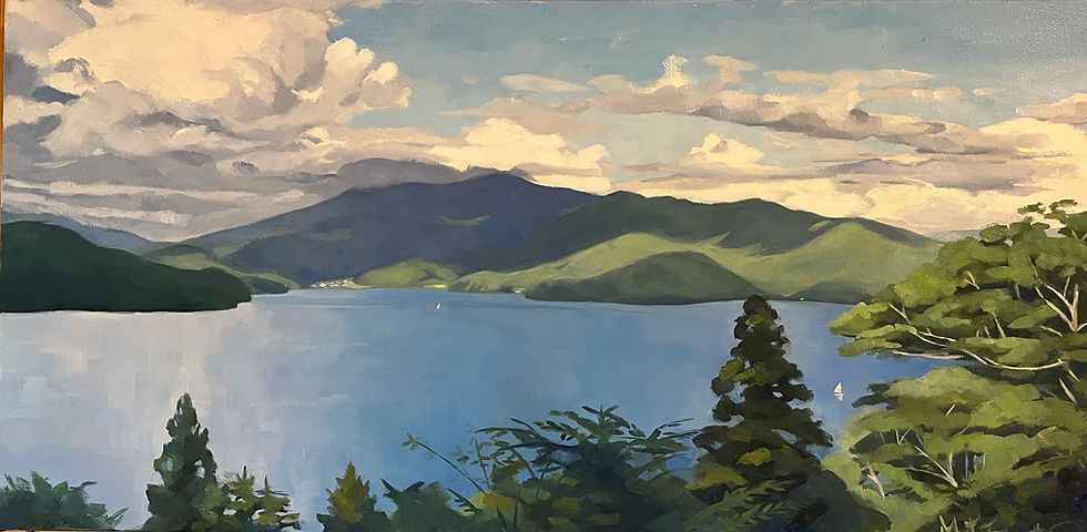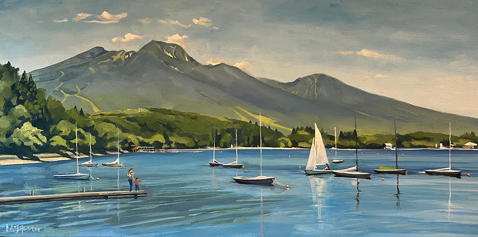 I grew up spending magical summers at Lake Nojiri, where my parents had a cabin in a rustic international community on a hill overlooking the lake. I learned to swim there, hiked the mountains and soaked up its beauty. I remember swimming through the glassy morning water to the island and sailing with friends to the rope swing. My father loved to paint outdoors, and sometimes took me with him. That was how I learned to paint. My dad died in 2019 at age 93, so this is also a way to carry on his legacy.